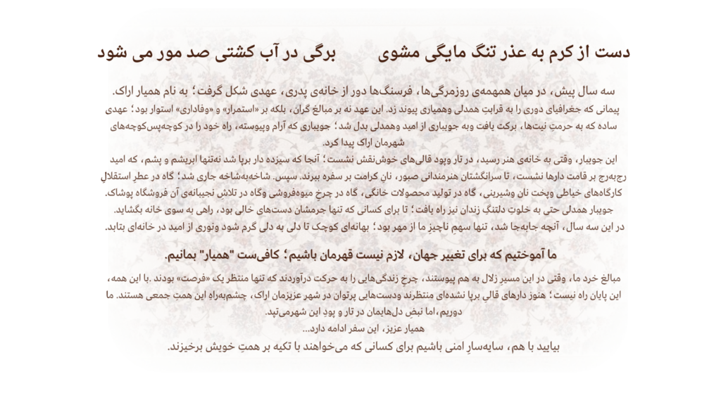 گروه اراک همیار در ماه مارس ۲۰۲۳ با پیشنهاد آقایان رضا حسین نژاد و مسعود…